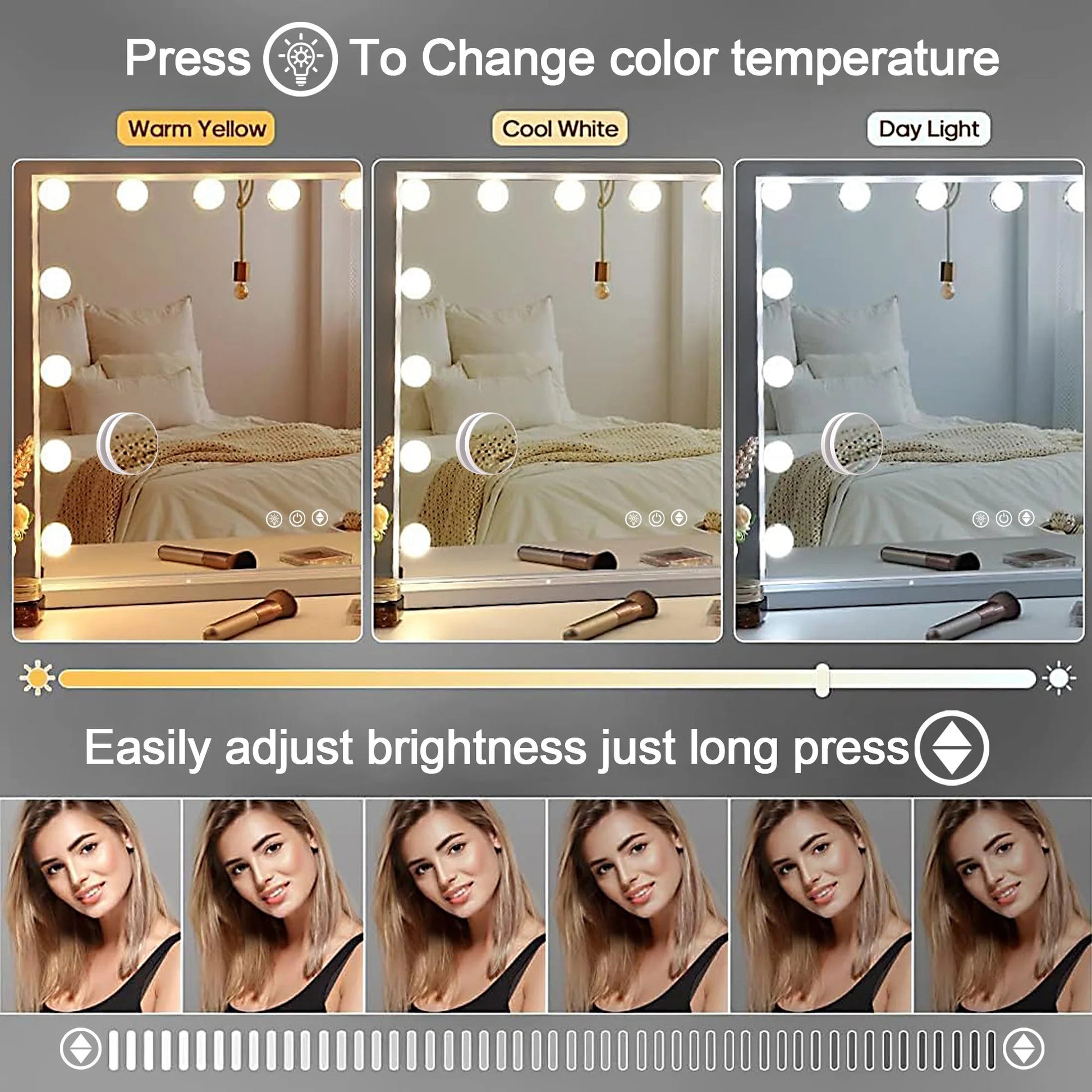 Kjo pasqyrë me 14 llamba LED të jep dritë perfekte për çdo moment: